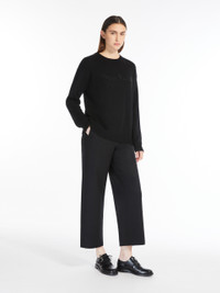 DETAILS Relaxed-fit joggers made of soft, warm stretch wool flannel. Ankle-length style with elasticated waist at the back, slant pockets at the sides and an adjustable drawstring at the front. Covered zip fastening and hooks. COMPOSITION AND CARE 98% virgin wool, 2% elastane. Do not wash; do not bleach; do not tumble dry; cool iron; professionally dry clean perchloroethylene - mild process; do not wet clean.; wash the garment while it is fastened.; do not iron the buttons.; protect the ends stoppers and/or the cord ends before washing.; contains non-textile parts of animal origin. Distributed by Max Mara S.r.l., registered office in Reggio Emilia (Italy), Via Giulia Maramotti 4, 42124 (IT)