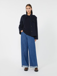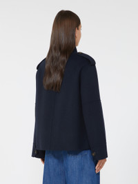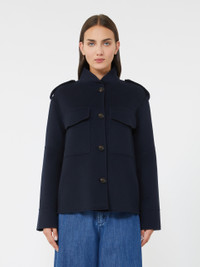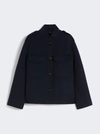 DETAILS Short jacket, with epaulettes on the shoulders and a seam motif on the elbows. Jacket made from hand-sewn, pure wool double drap Straight cut with side slits Stand collar Long sleeves with slits and horn button on the cuffs Front fastening with horn buttons Pockets with applied flap on the chest Semi-lined with silk sleeves COMPOSITION AND CARE Fabric 100% virgin wool; - except joining thread; lining 100% silk. Do not wash; do not bleach; do not tumble dry; cool iron; professionally dry clean perchloroethylene - mild process; do not wet clean.; wash the garment while it is fastened.; do not iron the buttons.; protect buttons before washing.; turn the articles inside out before washing.; contains non-textile parts of animal origin. Distributed by Max Mara S.r.l., registered office in Reggio Emilia (Italy), Via Giulia Maramotti 4, 42124 (IT)