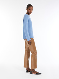 DETAILS Crew-neck jumper in an exquisite combination of wool and cashmere. Straight-cut style with long sleeves and small side slits at the hem. Finished with ribbed edges. COMPOSITION AND CARE 68% wool, 29% cashmere, 3% polyamide. Hand wash cold; do not bleach; do not tumble dry; flat drying in the shade; cool iron; professionally dry clean perchloroethylene - mild process; do not wet clean.; iron with a cloth between.; using neutral detergent.; turn the articles inside out before washing.; to be ironed on reverse. Distributed by Max Mara S.r.l., registered office in Reggio Emilia (Italy), Via Giulia Maramotti 4, 42124 (IT)