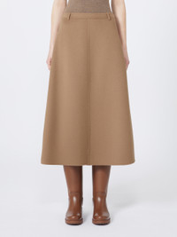 DETAILS Slightly flared long skirt. Skirt in hand-sewn double-faced pure wool broadcloth Mid-rise Concealed zip fastening at the back Belt loop detail at the waist Pure silk lining COMPOSITION AND CARE Fabric 100% virgin wool; - except joining thread; lining 100% silk. Do not wash; do not bleach; do not tumble dry; cool iron; professionally dry clean perchloroethylene - mild process; do not wet clean. Distributed by Max Mara S.r.l., registered office in Reggio Emilia (Italy), Via Giulia Maramotti 4, 42124 (IT)