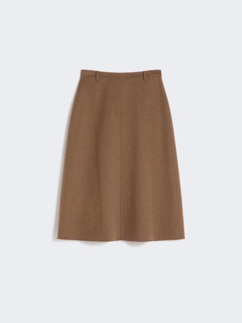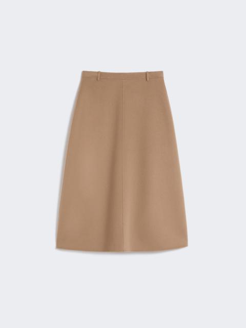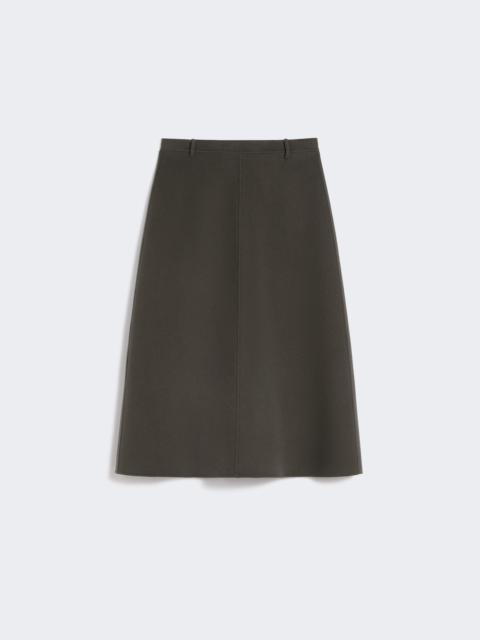 DETAILS Slightly flared long skirt. Skirt in hand-sewn double-faced pure wool broadcloth Mid-rise Concealed zip fastening at the back Belt loop detail at the waist Pure silk lining COMPOSITION AND CARE Fabric 100% virgin wool; - except joining thread; lining 100% silk. Do not wash; do not bleach; do not tumble dry; cool iron; professionally dry clean perchloroethylene - mild process; do not wet clean. Distributed by Max Mara S.r.l., registered office in Reggio Emilia (Italy), Via Giulia Maramotti 4, 42124 (IT)