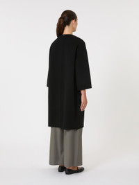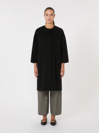 DETAILS Long coat featuring a straight fit and dropped shoulders. Coat in hand-sewn double-faced pure wool broadcloth Crew-neck Long low set-in sleeves Concealed button fastening on the front In-seam side pockets Unlined model COMPOSITION AND CARE Fabric 100% virgin wool; - except joining thread. Do not wash; do not bleach; do not tumble dry; cool iron; professionally dry clean perchloroethylene - mild process; do not wet clean.; wash the garment while it is fastened. Distributed by Max Mara S.r.l., registered office in Reggio Emilia (Italy), Via Giulia Maramotti 4, 42124 (IT)