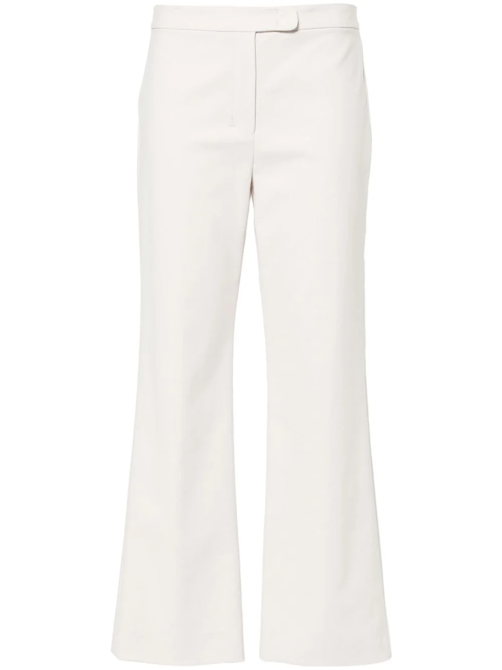high-waisted flared trousers Highlights - Ecru - Stretch-design - Pressed crease - Dart detailing - Flared - Concealed rear hook and zip fastening Imported Composition Polyamide 50%, Cotton 45%, Elastane 5% SIZE & FIT Model measurements Height 5 ft 9 in(1.76 m) Bust/Chest 31.1 in(79 cm) Hips 36.61 in(93 cm) Waist 24.8 in(63 cm) FittingInformation Designed for a straight-leg fit, these trousers allow for a close fit at the waist and an unrestricted, comfortable fit over the leg Made from a midweight stretch fabric, this piece offers elasticity and flexibility when worn This piece fits true to size – take your usual size Washing instructions Hand Wash