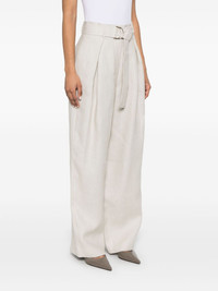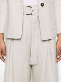 Jane trousers Highlights - Ecru - Concealed front button, hook and zip fastening - Detachable waist belt - Two side slit pockets - Two rear button-fastening jetted pockets Imported Composition Linen/Flax 100% SIZE & FIT Model measurements Height 5 ft 10 in(1.78 m) Bust/Chest 32.67 in(83 cm) Hips 35.43 in(90 cm) Waist 23.22 in(59 cm) FittingInformation Designed with a wide-leg cut, these trousers allow for a close fit at the waist and offer a loose and roomy fit over the leg The belt offers adjustability for fitted preferences Made from a midweight non-stretch fabric