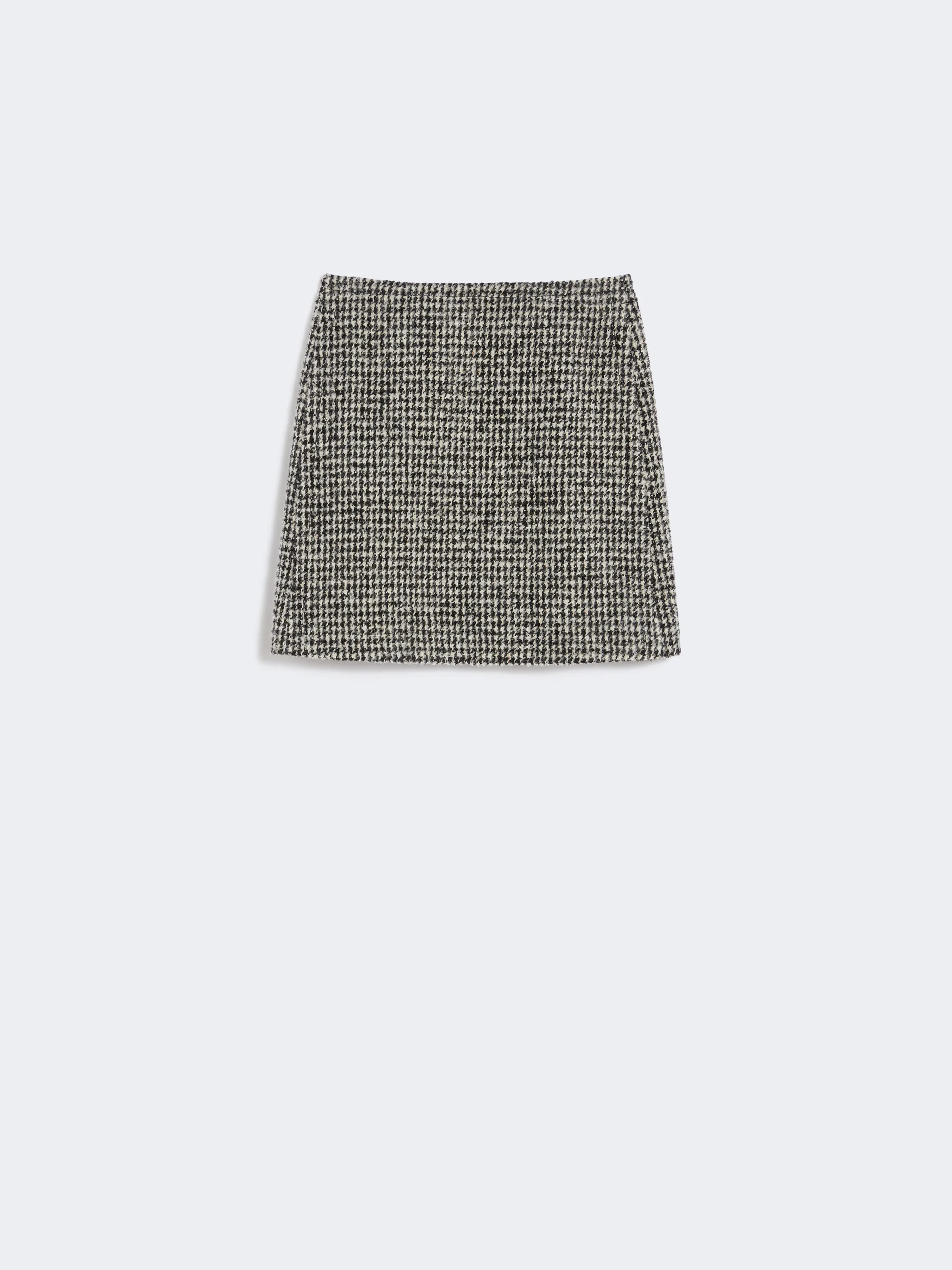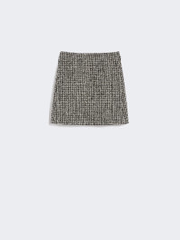 DETAILS Mini skirt featuring a boucle texture and houndstooth pattern. Wool and alpaca fabric mini skirt A-line fit Mid-rise Concealed zip fastening at the back Sewn darts at the back of the waist Lined model COMPOSITION AND CARE Fabric 48% virgin wool, 18% polyester, 14% acrylic, 11% alpaca, 9% polyamide; lining 100% cupro; lining 2 100% cotton. Do not wash; do not bleach; do not tumble dry; cool iron; professionally dry clean perchloroethylene - mild process; do not wet clean. Distributed by Max Mara S.r.l., registered office in Reggio Emilia (Italy), Via Giulia Maramotti 4, 42124 (IT)