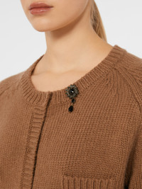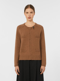 DETAILS Feminine, regular-fit cardigan. Cardigan in two-tone mouline wool and cashmere yarn The crew neckline is embellished with removable bejewelled embroidery Long raglan sleeves Concealed matte mother-of-pearl button fastening 4 decorative flaps on the front Rib-knit trims and details COMPOSITION AND CARE 80% wool, 20% cashmere. Hand wash cold (40°c max); do not bleach; do not tumble dry; flat drying in the shade; cool iron; professionally dry clean perchloroethylene - mild process; do not wet clean.; iron with a cloth between.; using neutral detergent.; before cleaning the style remove the accessories.; turn the articles inside out before washing.; to be ironed on reverse. Distributed by Max Mara S.r.l., registered office in Reggio Emilia (Italy), Via Giulia Maramotti 4, 42124 (IT)