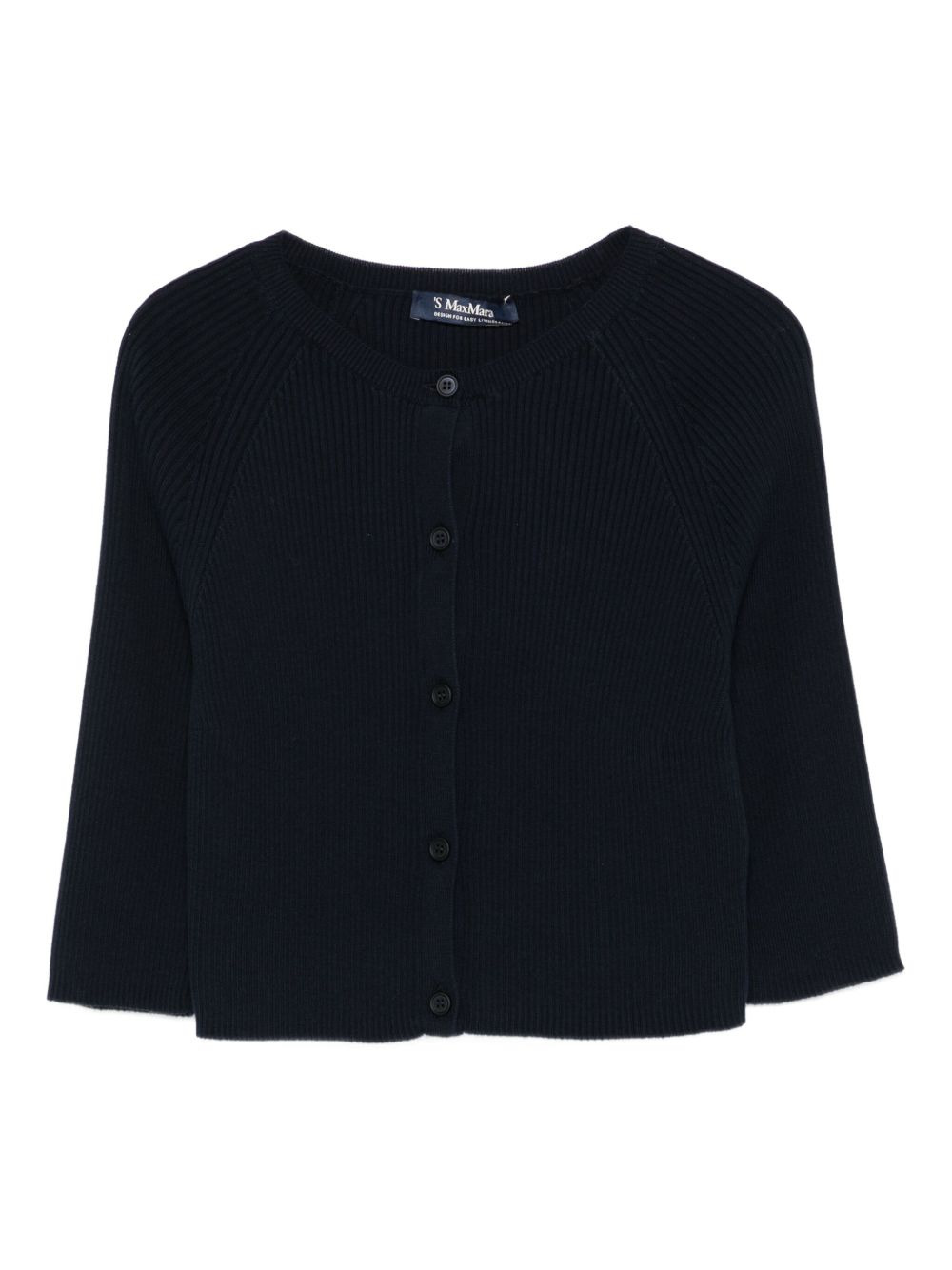 ribbed buttoned cardigan Highlights - Navy blue - Ribbed texture - Button fastening - Three-quarter sleeves - Round neck - Cropped length Imported Composition Cotton 100% SIZE & FIT Model measurements Height 5 ft 10 in(1.78 m) Bust/Chest 33.46 in(85 cm) Hips 36.22 in(92 cm) Waist 23.22 in(59 cm)