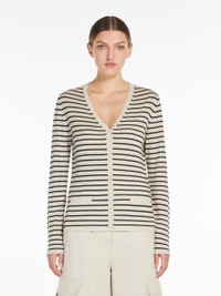 DETAILS V-neck cardigan in fine lightweight pure wool yarn featuring long set-in sleeves and welt front pockets. Embellished with contrasting-colour trims. Visible button fastening on the front. COMPOSITION AND CARE 100% virgin wool. Hand wash cold; do not bleach; do not tumble dry; flat drying in the shade; cool iron; professionally dry clean perchloroethylene - mild process; do not wet clean.; iron with a cloth between.; using neutral detergent.; turn the articles inside out before washing.; to be ironed on reverse. Distributed by Max Mara S.r.l., registered office in Reggio Emilia (Italy), Via Giulia Maramotti 4, 42124 (IT)