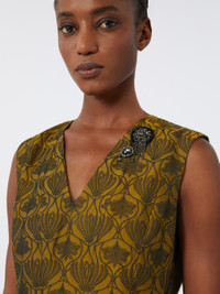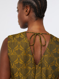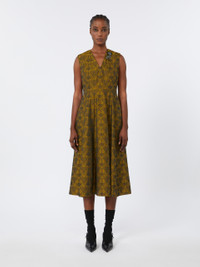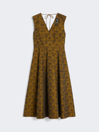DETAILS Midi dress featuring a contoured bodice and flared skirt. - Cotton-blend jacquard-design dress - Fit and flare fit - V-neck at front and back, with removable jewel appliques - Sleeveless - Closure with ties to fasten at the back of the neck and a concealed zip - Side inset pockets - Partially lined COMPOSITION AND CARE Fabric 61% polyester, 39% cotton; lining 61% polyester, 39% cotton; - exclusive of decoration. Hand wash cold; do not bleach; do not tumble dry; line drying in the shade; cool iron; professionally dry clean perchloroethylene - mild process; do not wet clean.; remove the decorations before washing. Distributed by Max Mara S.r.l., registered office in Reggio Emilia (Italy), Via Giulia Maramotti 4, 42124 (IT)