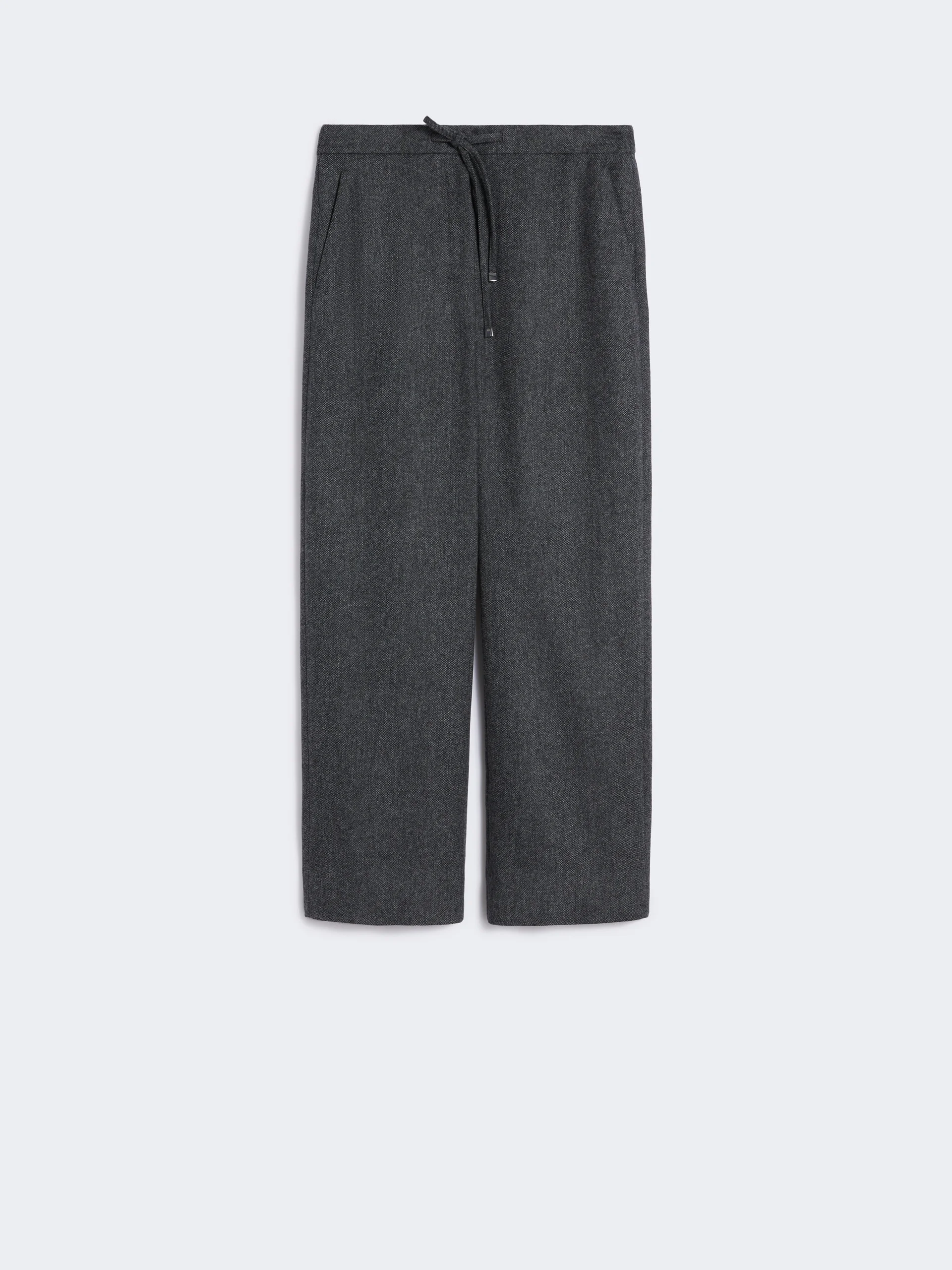 DETAILS Houndstooth-patterned jogging bottoms. Trousers in wool and cashmere Saxony fabric Relaxed leg Rear-elasticated drawstring waist Fly-covered zip and hook-and-bar fastening Slant side pockets COMPOSITION AND CARE 95% virgin wool, 5% cashmere. Do not wash; do not bleach; do not tumble dry; cool iron; professionally dry clean perchloroethylene - mild process; do not wet clean.; wash the garment while it is fastened.; do not iron the buttons.; protect buttons before washing.; protect the ends stoppers and/or the cord ends before washing.; turn the articles inside out before washing.; contains non-textile parts of animal origin. Distributed by Max Mara S.r.l., registered office in Reggio Emilia (Italy), Via Giulia Maramotti 4, 42124 (IT)