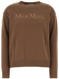 logo-embellished sweater Highlights - Caramel brown - Wool - Fine knit - Crew neck - Drop shoulder - Long sleeves - Logo embellishment - Ribbed trim - Straight hem Made in Italy Composition Wool 100%