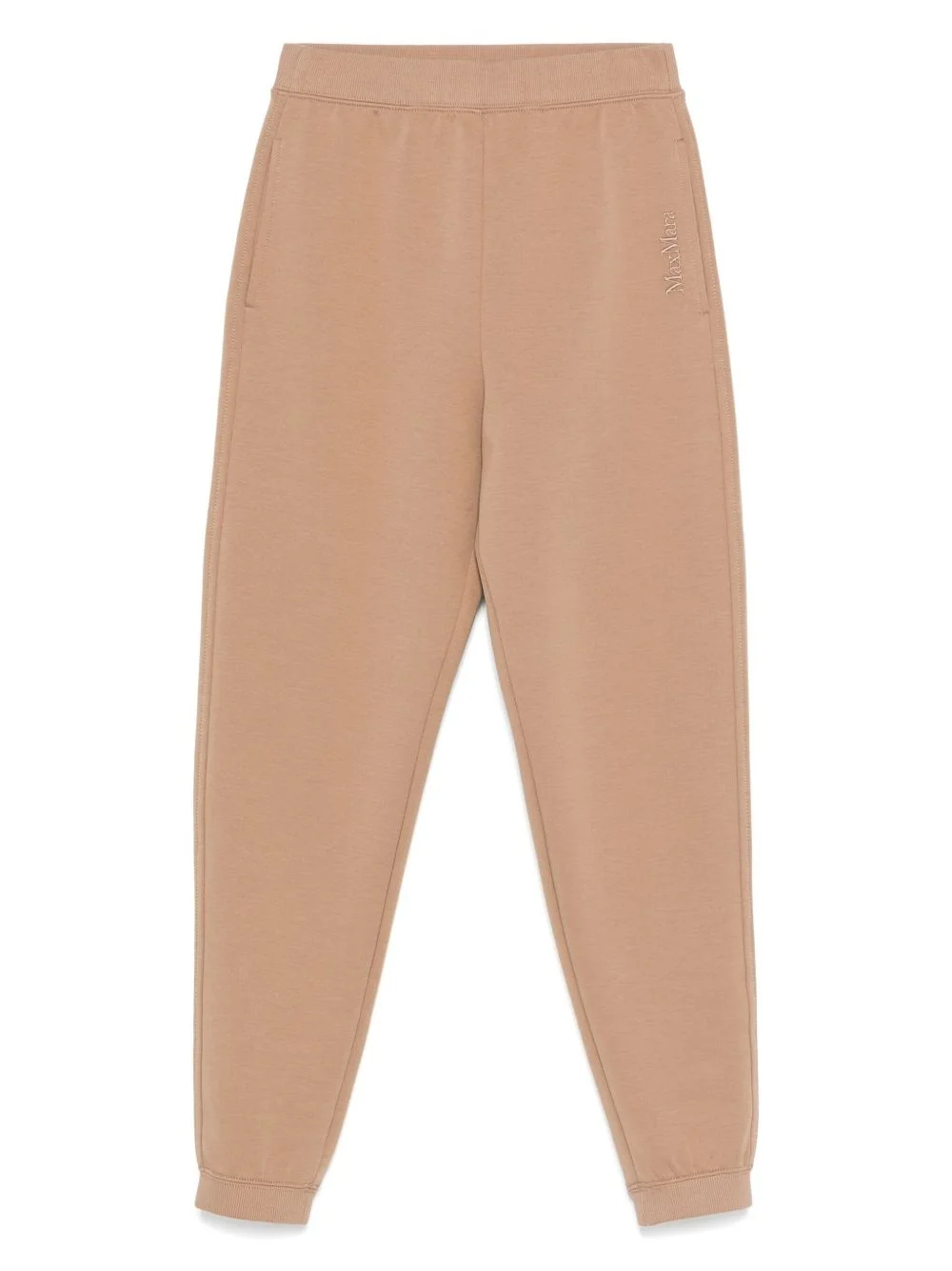 logo-embroidered track pants Highlights - Light brown - Ribbed waistband - Two side welt pockets - Ribbed ankles Imported Composition Cotton 78%, Polyester 22% SIZE & FIT Model measurements Height 5 ft 10 in(1.78 m) Bust/Chest 31.49 in(80 cm) Hips 37 in(94 cm) Waist 23.62 in(60 cm) FittingInformation Designed for a slim fit, these trousers offer a close fit at the waist, allowing a comfortable close fit and some movement over the leg The elasticated waist allows for a comfortable fit Made from a midweight non-stretch fabric, this piece offers minimal elasticity when worn Washing instructions Machine Wash