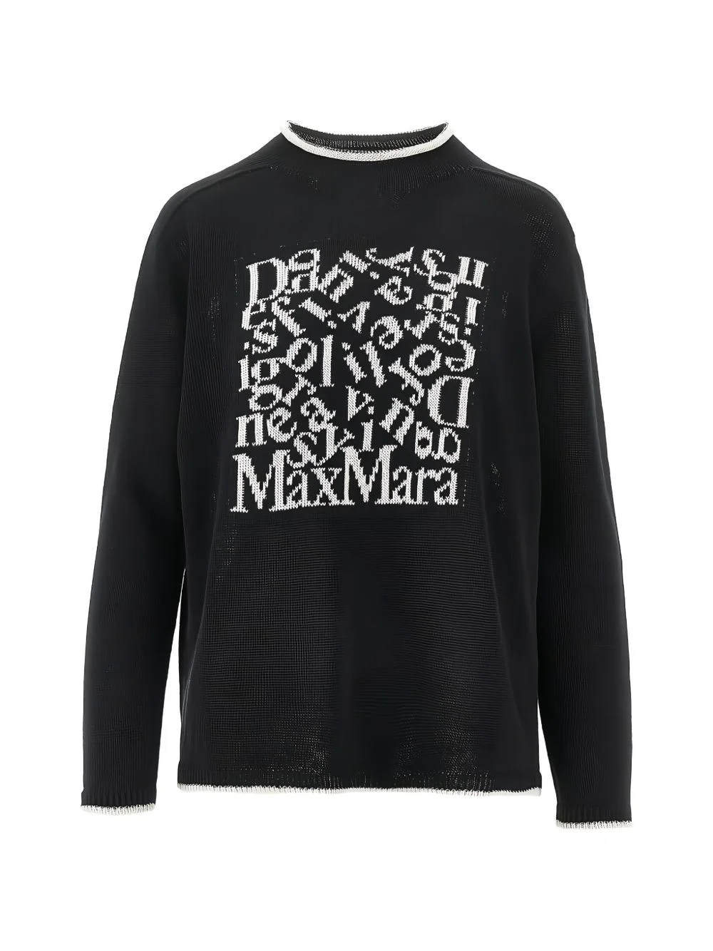 logo-intarsia jumper Highlights - Black - Crew neck - Ribbed trim Made in Italy Composition Linen/Flax 100%