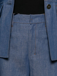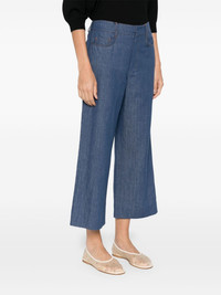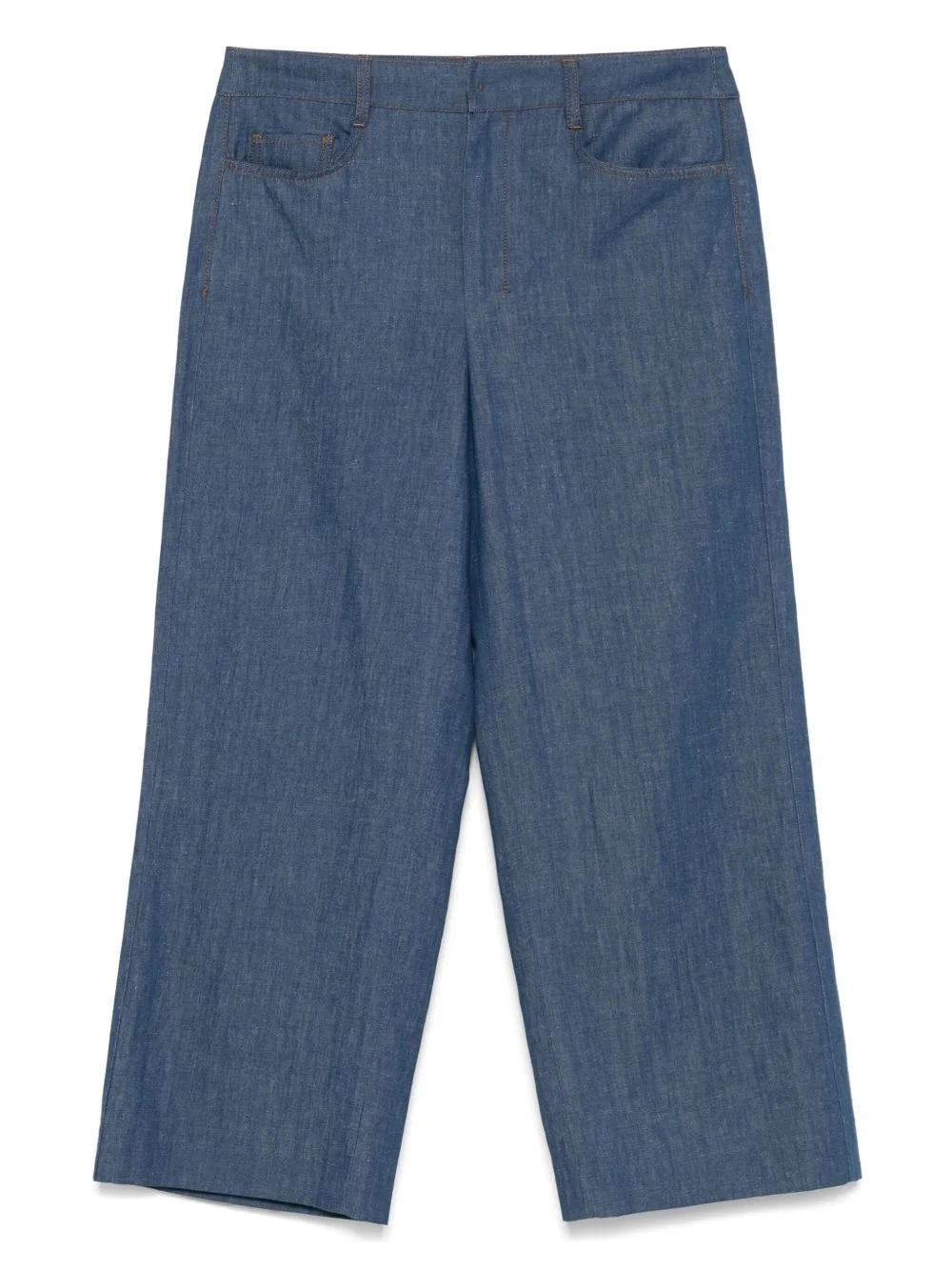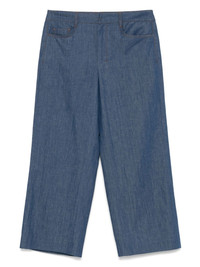 logo-patch trousers Highlights - Blue - Concealed front fastening - Belt loops - Logo patch to the rear Imported Composition Cotton 57%, Linen/Flax 43% SIZE & FIT Model measurements Height 5 ft 10 in(1.79 m) Bust/Chest 33.07 in(84 cm) Hips 35.82 in(91 cm) Waist 24.01 in(61 cm) FittingInformation Designed with a wide-leg cut, these trousers allow for a close fit at the waist and offer a loose and roomy fit over the leg Cropped in length Made from a midweight non-stretch fabric