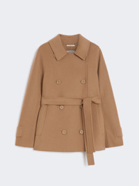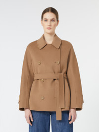 DETAILS Short double-breasted trench coat featuring a matching waist belt. Trench coat in hand-sewn double-faced pure wool broadcloth Lapel collar Long raglan sleeves with cuff tab and button detail at the hem Visible button fastening Welt side pockets Small central rear vent Unlined model COMPOSITION AND CARE Fabric 100% virgin wool; - except joining thread. Do not wash; do not bleach; do not tumble dry; cool iron; professionally dry clean perchloroethylene - mild process; do not wet clean.; wash the garment while it is fastened.; turn the articles inside out before washing. Distributed by Max Mara S.r.l., registered office in Reggio Emilia (Italy), Via Giulia Maramotti 4, 42124 (IT)
