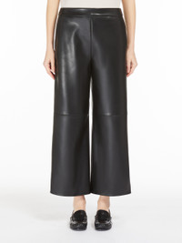 DETAILS Trousers in soft coated fabric, featuring a straight-leg silhouette and elasticated waist at the back. Relaxed-fit style with internal logo elastic, finished with side pockets, and leather goods style seams and stitching. COMPOSITION AND CARE Jersey fabric 100% polyester; layer polyurethanic resin. Machine wash cold delicate cycle; do not bleach; do not tumble dry; flat drying in the shade; cool iron; do not dry clean; professional wet cleaning - very mild process.; iron with a cloth between.; using neutral detergent.; turn the articles inside out before washing.; to be ironed on reverse. Distributed by Max Mara S.r.l., registered office in Reggio Emilia (Italy), Via Giulia Maramotti 4, 42124 (IT)