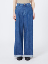 DETAILS Jeans featuring a classic 5-pocket design and turn-up detail at the hem. Washed pure cotton denim jeans Straight leg with pressed pleat detail on the front Fly-covered zip and tack button fastening Patch rear pockets Belt loops and metal rivets Branded rear hem tag COMPOSITION AND CARE 100% cotton. Machine wash cold delicate cycle; do not bleach; do not tumble dry; line drying in the shade; cool iron; do not dry clean.; wash the garment while it is fastened.; don’t iron the labels.; turn the articles inside out before washing.; take care when wearing light-coloured clothes or accessories because, with the heat of the body, the indigo fabric , may fade and stain. be careful while sitting on light coloured surfaces, especially if wet. wash garments separately and always turned inside out. hang the garment turned inside out by avoiding to expose it to direct sunlight. avoid removing isolated stains. Distributed by Max Mara S.r.l., registered office in Reggio Emilia (Italy), Via Giulia Maramotti 4, 42124 (IT)