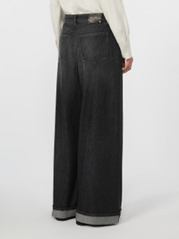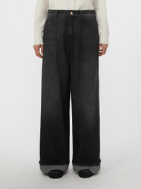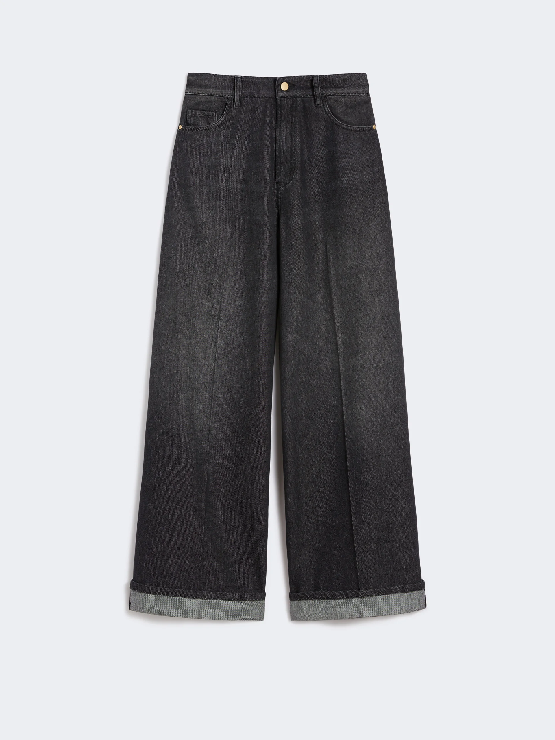 DETAILS Jeans featuring a classic 5-pocket design and turn-up detail at the hem. Cotton and viscose denim jeans Straight leg with pressed pleat detail on the front Fly-covered zip and tack button fastening Patch rear pockets Belt loops and metal rivets Branded rear hem tag COMPOSITION AND CARE 68% cotton, 32% viscose. Machine wash cold delicate cycle; do not bleach; do not tumble dry; line drying in the shade; cool iron; do not dry clean.; wash the garment while it is fastened.; don’t iron the labels.; turn the articles inside out before washing.; take care when wearing light-coloured clothes or accessories because, with the heat of the body, the denim fabric that comes into contact with them may bleed and stain. be careful while sitting on pale colored surfaces, especially if wet. wash denim items separately and always turned inside out. hang the garment turned inside out by avoiding to expose it to direct sunlight. avoid removing isolated stains. Distributed by Max Mara S.r.l., registered office in Reggio Emilia (Italy), Via Giulia Maramotti 4, 42124 (IT)