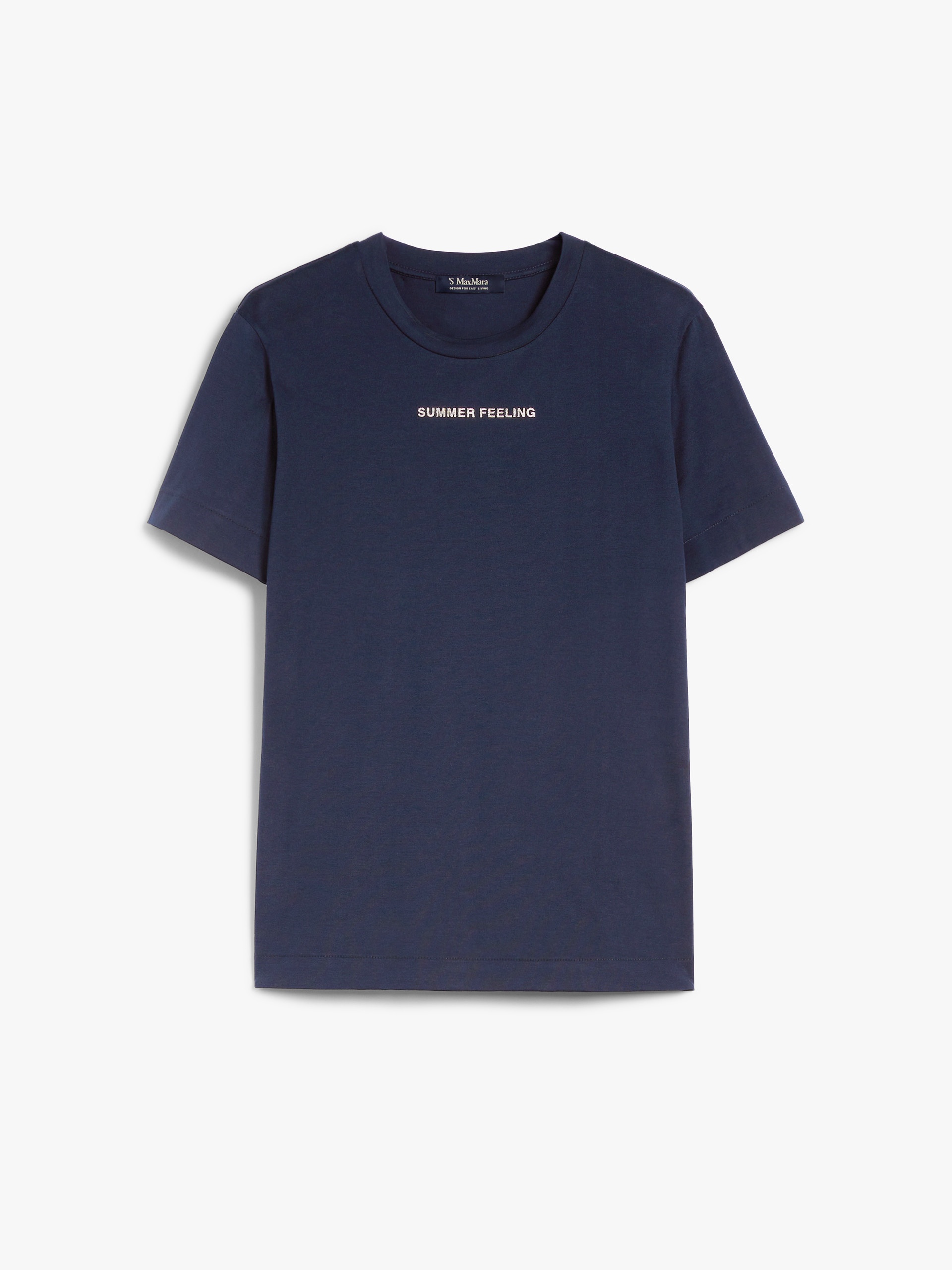 DETAILS Short-sleeved T-shirt in soft pure cotton jersey fabric. The model boasts small side slits and a subtle high-low asymmetrical hem design. Customised with a gold foil print and Max Mara lettering at the back. COMPOSITION AND CARE 100% cotton. Hand wash cold; do not bleach; do not tumble dry; flat drying in the shade; cool iron; do not dry clean; do not wet clean.; iron with a cloth between.; using neutral detergent.; don’t rub.; turn the articles inside out before washing.; to be ironed on reverse. Distributed by Max Mara S.r.l., registered office in Reggio Emilia (Italy), Via Giulia Maramotti 4, 42124 (IT)