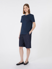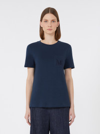 DETAILS Basic T-shirt featuring a patch breast pocket and tonal embroidered M Max Mara logo detail. Pure cotton jersey T-shirt Regular fit and straight cut Crew-neck Short set-in sleeves Straight hem COMPOSITION AND CARE Jersey fabric 100% cotton; - exclusive of embroideries. Machine wash cold delicate cycle; do not bleach; do not tumble dry; flat drying in the shade; cool iron; professionally dry clean perchloroethylene - mild process; professional wet cleaning - very mild process.; iron with a cloth between.; iron into original measurements.; using neutral detergent.; don’t rub.; turn the articles inside out before washing.; to be ironed on reverse. Distributed by Max Mara S.r.l., registered office in Reggio Emilia (Italy), Via Giulia Maramotti 4, 42124 (IT)