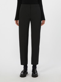 DETAILS Tailored trousers with slightly flared leg hems. Stretch wool gabardine trousers Slim fit High-cut waistband with a fly-covered zip and hook-and-bar fastening Slant side pockets Pressed pleat detail COMPOSITION AND CARE 70% polyester, 23% wool, 7% elastane. Machine wash cold delicate cycle; do not bleach; do not tumble dry; line drying in the shade; cool iron; professionally dry clean perchloroethylene - mild process.; wash the garment while it is fastened.; contains non-textile parts of animal origin. Distributed by Max Mara S.r.l., registered office in Reggio Emilia (Italy), Via Giulia Maramotti 4, 42124 (IT)
