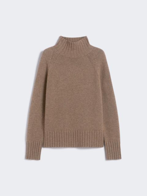 DETAILS Polo-neck sweater with an essential yet versatile style. Wool and cashmere yarn polo-neck sweater Boxy fit High neck Long raglan sleeves Rib-knit trims Straight hem COMPOSITION AND CARE 80% wool, 20% cashmere. Hand wash cold (40°c max); do not bleach; do not tumble dry; flat drying in the shade; cool iron; professionally dry clean perchloroethylene - mild process; do not wet clean.; iron with a cloth between.; using neutral detergent.; turn the articles inside out before washing.; to be ironed on reverse. Distributed by Max Mara S.r.l., registered office in Reggio Emilia (Italy), Via Giulia Maramotti 4, 42124 (IT)