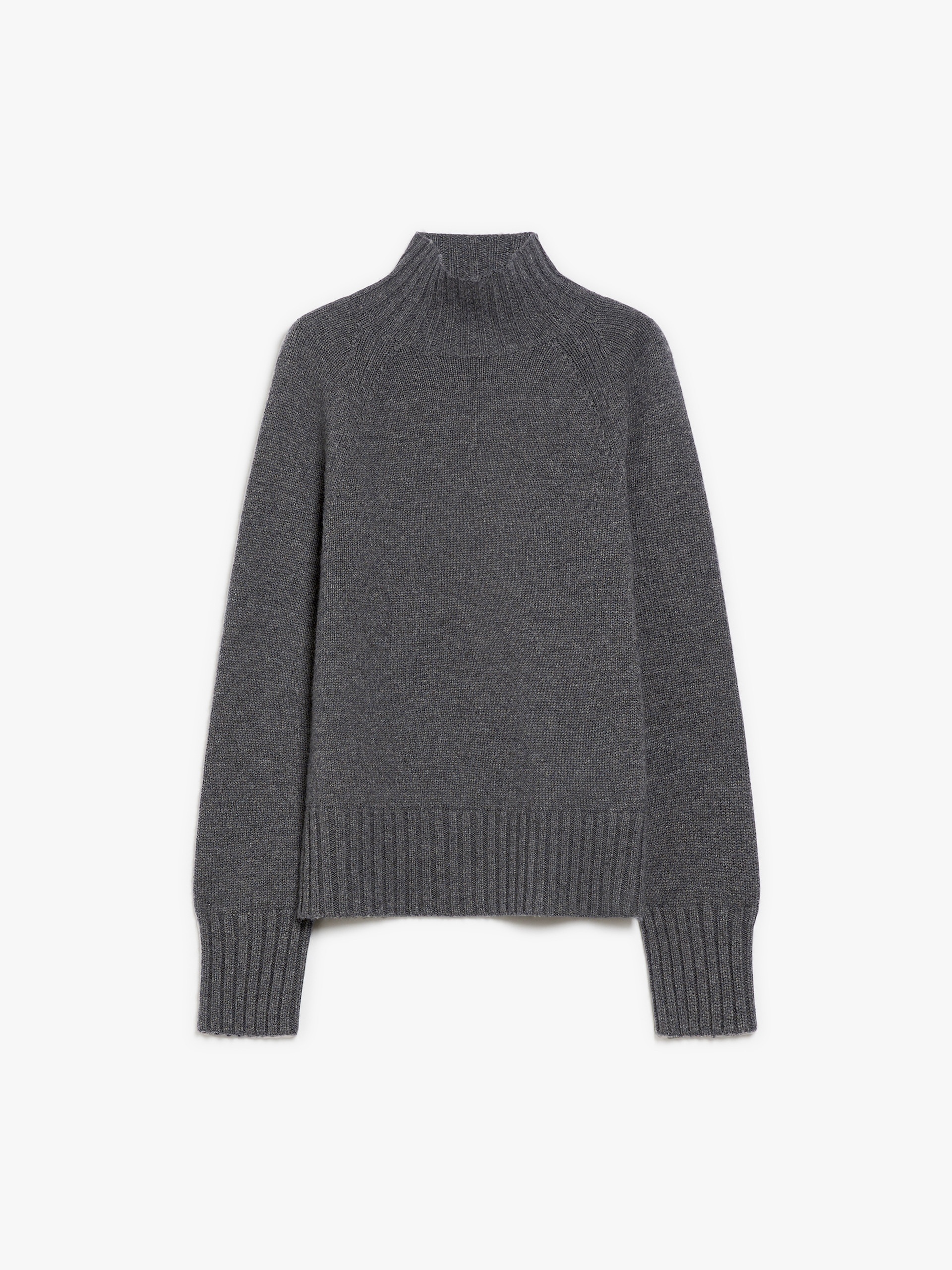 DETAILS Turtleneck jumper made of luxurious wool and cashmere yarn. The minimalist design is finished with ribbed edges, collar and cuffs with a contrasting border, and long raglan sleeves. COMPOSITION AND CARE 80% wool, 20% cashmere. Hand wash cold; do not bleach; do not tumble dry; flat drying in the shade; cool iron; professionally dry clean perchloroethylene - mild process; do not wet clean.; iron with a cloth between.; using neutral detergent.; turn the articles inside out before washing.; to be ironed on reverse. Distributed by Max Mara S.r.l., registered office in Reggio Emilia (Italy), Via Giulia Maramotti 4, 42124 (IT)