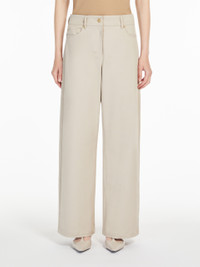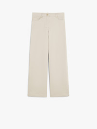 DETAILS 5-pocket trousers crafted from stretch cotton bull denim. The wide-leg model boasts belt loop detail at the waist and welt rear pockets. Embellished with metal rivets. Concealed zip and tack button fastening. COMPOSITION AND CARE 98% cotton, 2% elastane. Machine wash cold delicate cycle; do not bleach; do not tumble dry; line drying in the shade; cool iron; do not dry clean.; wash the garment while it is fastened.; don’t iron the labels.; do not iron the buttons.; protect buttons before washing.; contains non-textile parts of animal origin. Distributed by Max Mara S.r.l., registered office in Reggio Emilia (Italy), Via Giulia Maramotti 4, 42124 (IT)