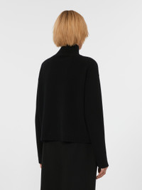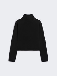 DETAILS Boxy-fit polo-neck sweater with a cropped waist cut. Wool and cashmere yarn sweater Mini cut and a relatively loose bodice High neck Drop-shoulder long sleeves Rib-knit trims Straight hem COMPOSITION AND CARE 80% wool, 20% cashmere. Hand wash cold (40°c max); do not bleach; do not tumble dry; flat drying in the shade; cool iron; professionally dry clean perchloroethylene - mild process; do not wet clean.; iron with a cloth between.; using neutral detergent.; turn the articles inside out before washing.; to be ironed on reverse. Distributed by Max Mara S.r.l., registered office in Reggio Emilia (Italy), Via Giulia Maramotti 4, 42124 (IT)