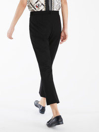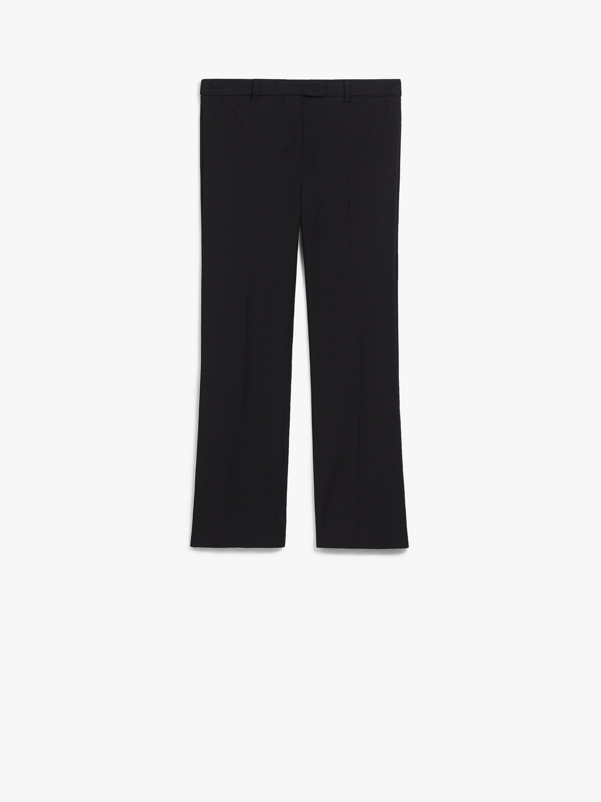 DETAILS Slightly flared trousers in stretch cotton-blend fabric. Embellished with pressed pleat detail on the leg, in addition to belt loops. Extended waist tab, complete with a placket-covered zip and hook-and-bar fastening. COMPOSITION AND CARE 52% cotton, 41% polyamide, 7% elastane. Machine wash cold delicate cycle; do not bleach; do not tumble dry; line drying in the shade; cool iron; professionally dry clean perchloroethylene - mild process.; wash the garment while it is fastened.; do not iron the buttons.; contains non-textile parts of animal origin. Distributed by Max Mara S.r.l., registered office in Reggio Emilia (Italy), Via Giulia Maramotti 4, 42124 (IT)