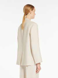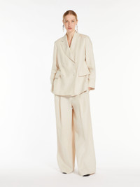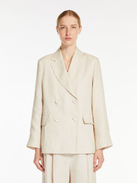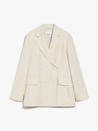 DETAILS Straight-cut double-breasted blazer, made of lightweight pure linen fabric. The construction features a lapel collar, long set-in sleeves with an overlapping cuff slit, and inset side pockets with a flap on the front. Semi-lined style, finished with a central vent on the back.Button fastening COMPOSITION AND CARE Fabric 100% flaxlinen; upper lining 92% cotton, 8% polyamide; sleeves lining 100% silk. Do not wash; do not bleach; do not tumble dry; cool iron; professionally dry clean perchloroethylene - mild process; do not wet clean.; wash the garment while it is fastened.; turn the articles inside out before washing. Distributed by Max Mara S.r.l., registered office in Reggio Emilia (Italy), Via Giulia Maramotti 4, 42124 (IT)