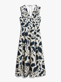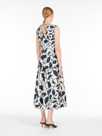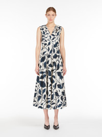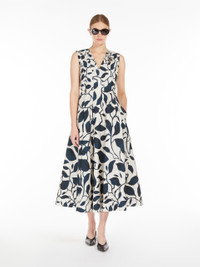 DETAILS Sleeveless midi dress in luxurious cotton poplin, with an all-over printed graphic motif specifically designed for this style. Featuring a silhouette with a fitted bodice and slightly flared skirt at the hem with side inset pockets. Style with a V neck, front and back, embellished with removable embroidered bezel details. Closure with ties to be fastened at the back of the neck and a concealed zip. COMPOSITION AND CARE Fabric 100% cotton; lining 100% cotton. Machine wash cold delicate cycle; do not bleach; do not tumble dry; line drying in the shade; cool iron; professionally dry clean perchloroethylene - mild process.; remove the decorations before washing. Distributed by Max Mara S.r.l., registered office in Reggio Emilia (Italy), Via Giulia Maramotti 4, 42124 (IT)