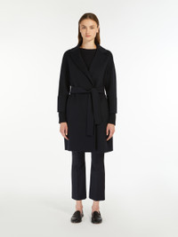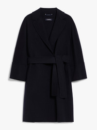 DETAILS Cocoon-fit short coat featuring a darted rear waist. Coat in hand-sewn double-faced pure wool broadcloth The comfort fit tapers slightly at the hem Small lapel collar Kimono sleeves on the front and raglan sleeves at the back Matching belt In-seam side pockets Unlined model COMPOSITION AND CARE Fabric 100% virgin wool; - except joining thread. Do not wash; do not bleach; do not tumble dry; cool iron; professionally dry clean perchloroethylene - mild process; do not wet clean. Distributed by Max Mara S.r.l., registered office in Reggio Emilia (Italy), Via Giulia Maramotti 4, 42124 (IT)
