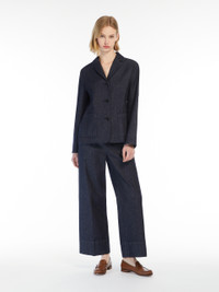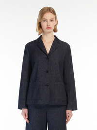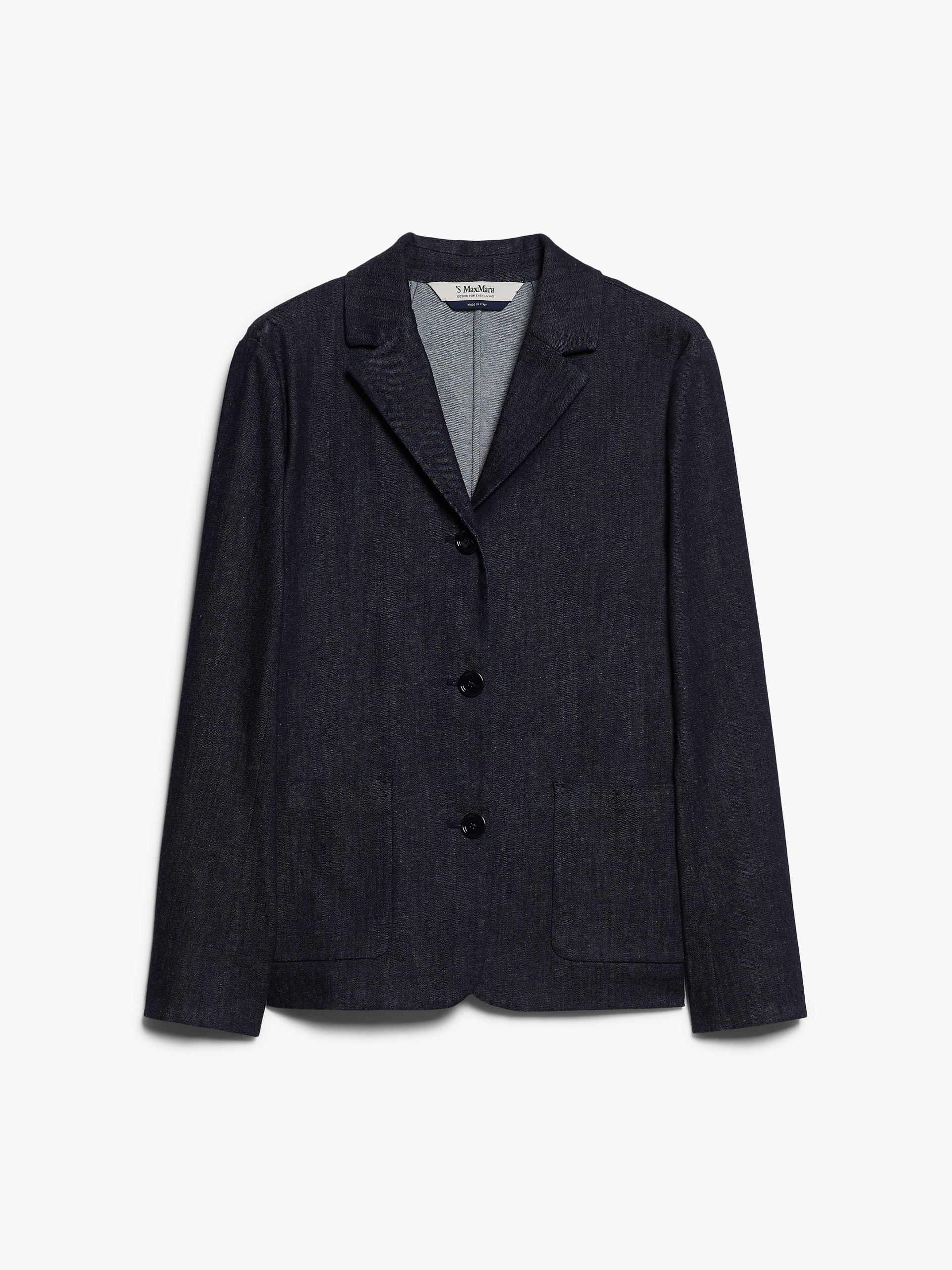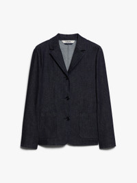 DETAILS Single-breasted jacket in stretch cotton denim, featuring a straight silhouette with a lapel collar, long set-in sleeves with slits in the hem and patch pockets on the front. Unlined, with a small central slit on the back. Visible button fastening. COMPOSITION AND CARE 90% cotton, 8% elastomultiester, 2% elastane. Machine wash cold delicate cycle; do not bleach; do not tumble dry; line drying in the shade; cool iron; professionally dry clean perchloroethylene - mild process.; wash the garment while it is fastened.; turn the articles inside out before washing.; take care when wearing light-coloured clothes or accessories because, with the heat of the body, the indigo fabric , may fade and stain. be careful while sitting on light coloured surfaces, especially if wet. wash garments separately and always turned inside out. hang the garment turned inside out by avoiding to expose it to direct sunlight. avoid removing isolated stains. Distributed by Max Mara S.r.l., registered office in Reggio Emilia (Italy), Via Giulia Maramotti 4, 42124 (IT)