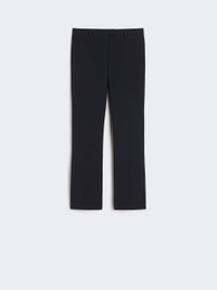 DETAILS Tailored trousers with a slightly flared cut at the hem. Trousers in stretch cotton-blend fabric Slim fit High-cut waistband with a fly-covered zip and hook-and-bar fastening Pressed pleat detail on the leg Belt loop detail at the waist Sewn pleats at the back of the waist COMPOSITION AND CARE 52% cotton, 41% polyamide, 7% elastane. Machine wash cold delicate cycle; do not bleach; do not tumble dry; line drying in the shade; cool iron; professionally dry clean perchloroethylene - mild process.; wash the garment while it is fastened.; do not iron the buttons.; protect buttons before washing.; contains non-textile parts of animal origin. Distributed by Max Mara S.r.l., registered office in Reggio Emilia (Italy), Via Giulia Maramotti 4, 42124 (IT)