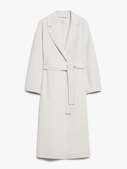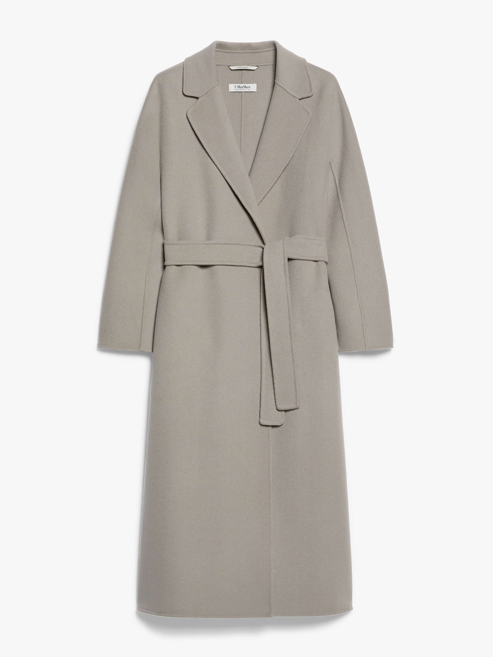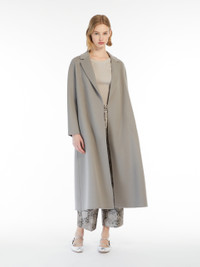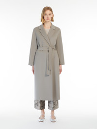 DETAILS Midi robe coat in a straight fit, slightly flared at the hem, crafted from fine hand-sewn double-faced pure wool fabric. The unlined design boasts a lapel collar, side seam pockets and kimono sleeves. The matching belt highlights the figure. COMPOSITION AND CARE Fabric 100% virgin wool; - except joining thread. Do not wash; do not bleach; do not tumble dry; cool iron; professionally dry clean perchloroethylene - mild process; do not wet clean. Distributed by Max Mara S.r.l., registered office in Reggio Emilia (Italy), Via Giulia Maramotti 4, 42124 (IT)