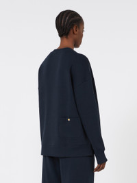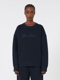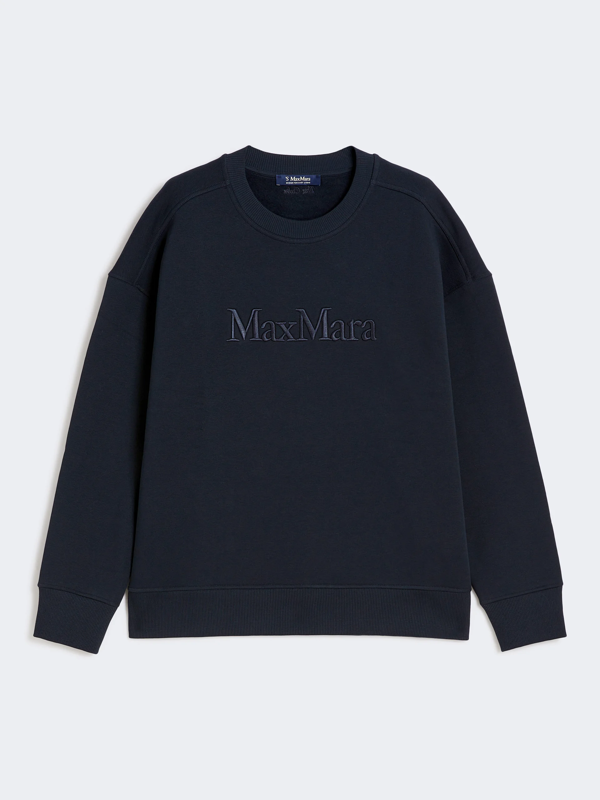 DETAILS Relaxed-fit sweatshirt, customised with Max Mara logo embroidered on the centre front. Brushed cotton jersey sweatshirt Crew neck Long sleeves with dropped shoulders Right-hand pocket on the back hem with logo snap button Ribbed trim COMPOSITION AND CARE Jersey fabric 88% cotton, 8% polyamide, 4% elastane; - exclusive of embroideries. Machine wash cold delicate cycle; do not bleach; do not tumble dry; flat drying in the shade; cool iron; professionally dry clean perchloroethylene - mild process; professional wet cleaning - very mild process.; iron with a cloth between.; using neutral detergent.; turn the articles inside out before washing.; to be ironed on reverse. Distributed by Max Mara S.r.l., registered office in Reggio Emilia (Italy), Via Giulia Maramotti 4, 42124 (IT)
