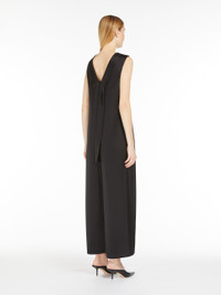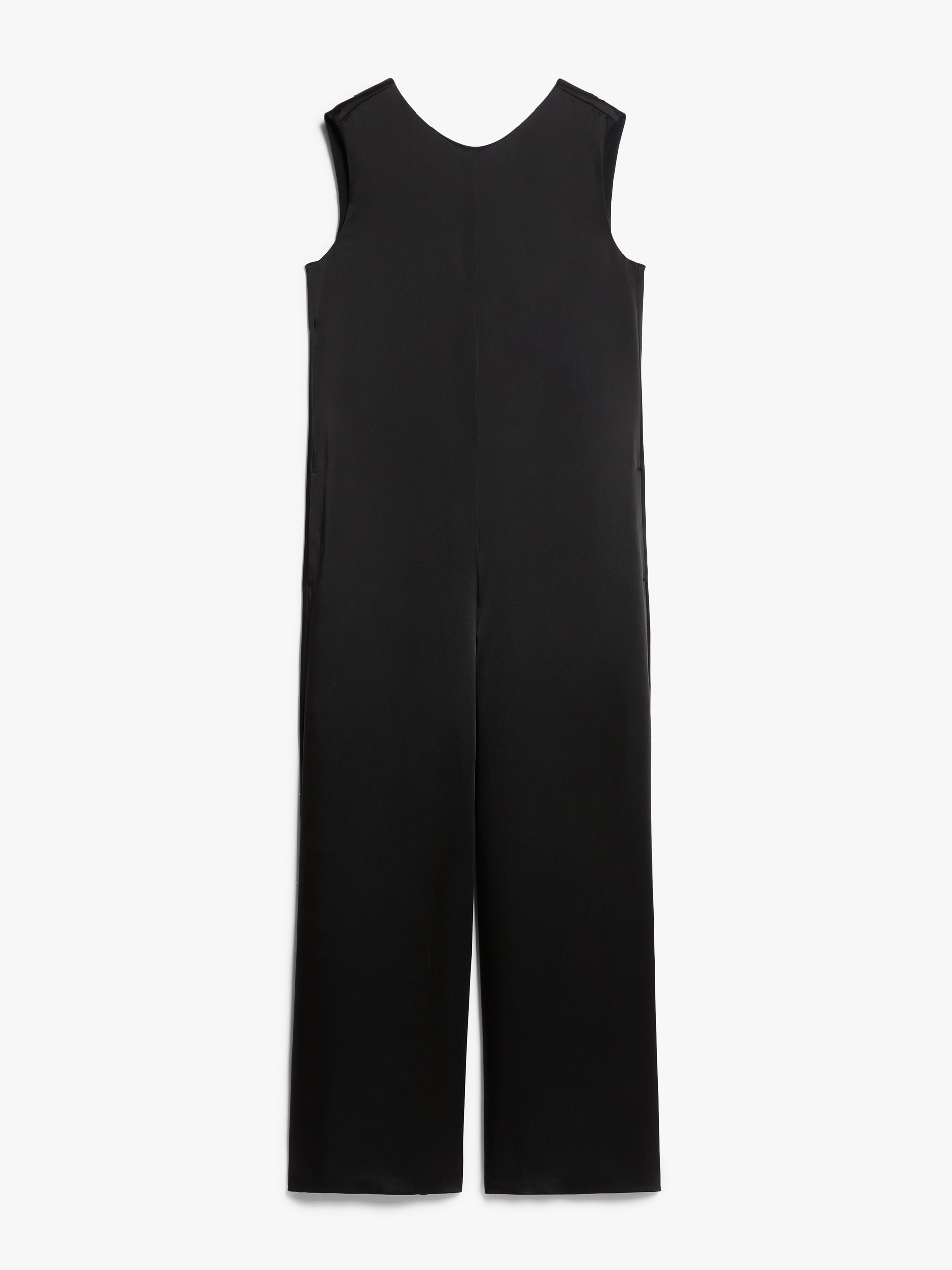 DETAILS Elegant sleeveless jumpsuit in a viscose satin blend, featuring a wide-leg silhouette and V-neck finished with ribbons on the back. Flowing crew-neck style with trousers cropped to the ankle and side inset pockets. Back zip fastening. COMPOSITION AND CARE Fabric 64% acetate, 36% viscose; lining 85% acetate, 10% silk, 5% polyamide. Do not wash; do not bleach; do not tumble dry; cool iron; professionally dry clean perchloroethylene - mild process; do not wet clean. Distributed by Max Mara S.r.l., registered office in Reggio Emilia (Italy), Via Giulia Maramotti 4, 42124 (IT)