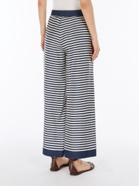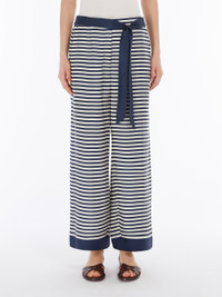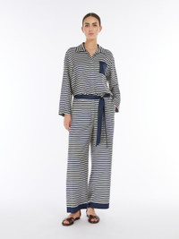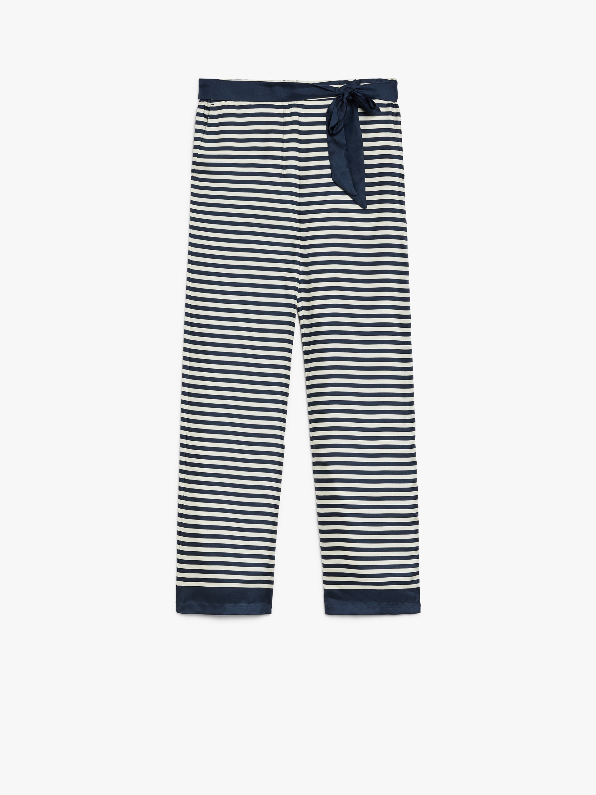DETAILS Straight-cut trousers in luxurious pure silk twill with an all-over printed motif. The style features a contrasting band on the hem, an elasticated waist at the back and slant pockets at the sides. The matching belt accentuates the silhouette. Fastening with a wide waistband tab, zip fly and small hook. COMPOSITION AND CARE 100% silk. Do not wash; do not bleach; do not tumble dry; cool iron; professionally dry clean perchloroethylene - mild process; do not wet clean.; wash the garment while it is fastened.; contains non-textile parts of animal origin. Distributed by Max Mara S.r.l., registered office in Reggio Emilia (Italy), Via Giulia Maramotti 4, 42124 (IT)