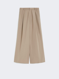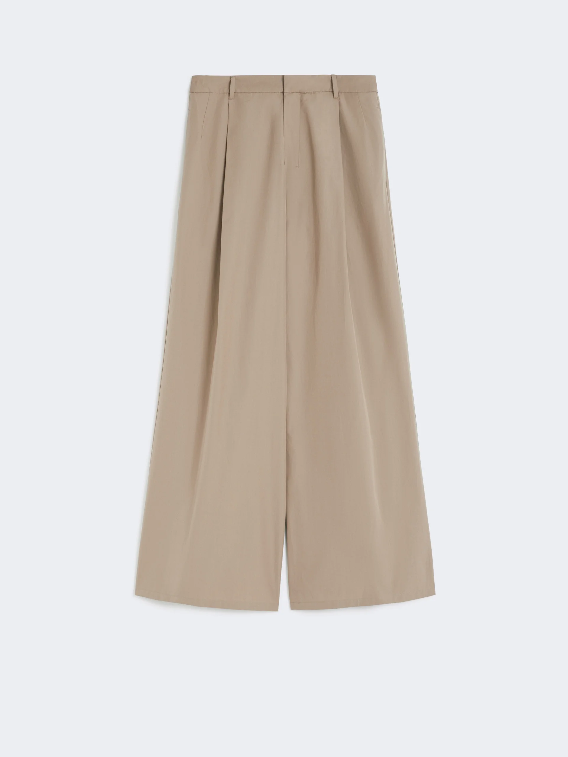 DETAILS Trousers featuring double front dart detail which contributes to the wide-leg cut. - Washed pure cotton poplin trousers - High-cut waistband with a fly-covered zip and hook-and-bar fastening - In-seam side pockets - Welt rear pockets - Belt loops COMPOSITION AND CARE 100% cotton. Machine wash cold delicate cycle; do not bleach; do not tumble dry; line drying in the shade; cool iron; professionally dry clean perchloroethylene - mild process.; wash the garment while it is fastened.; do not iron the buttons.; protect buttons before washing.; contains non-textile parts of animal origin. Distributed by Max Mara S.r.l., registered office in Reggio Emilia (Italy), Via Giulia Maramotti 4, 42124 (IT)