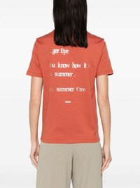 slogan-print cotton T-shirt Highlights - Burnt orange - Cotton - Jersey texture - Slogan print to the front and to the rear - Crew neck - Short sleeves - Straight hem Made in Italy Composition Cotton 100% SIZE & FIT FittingInformation Designed for a relaxed fit, this piece allows for comfort and movement when worn Made from a midweight non-stretch fabric, this piece offers minimal elasticity when worn This piece fits true to size – take your usual size