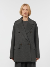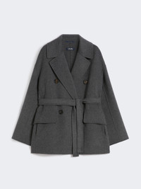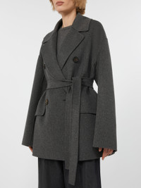 DETAILS Double-breasted jacket with matching belt to accentuate the silhouette. Jacket made from hand-sewn, pure wool double drap Slightly flared line Wide lapel collar Long sleeves with dropped shoulders Horn button fastening Inset side pockets with applied flap at the front Semi-lined with silk sleeves COMPOSITION AND CARE Fabric 100% virgin wool; - except joining thread; lining 100% silk. Do not wash; do not bleach; do not tumble dry; cool iron; professionally dry clean perchloroethylene - mild process; do not wet clean.; wash the garment while it is fastened.; do not iron the buttons.; protect buttons before washing.; turn the articles inside out before washing.; contains non-textile parts of animal origin. Distributed by Max Mara S.r.l., registered office in Reggio Emilia (Italy), Via Giulia Maramotti 4, 42124 (IT)