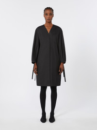 DETAILS Short dress with small patch pocket and puffed sleeves with ribbon fastening at the cuffs. Stretch cotton poplin dress Straight cut V neck Front fastening with concealed mother-of-pearl buttons Yoke seam and double darts on the back COMPOSITION AND CARE 80% cotton, 18% polyamide, 2% elastane. Machine wash cold delicate cycle; do not bleach; do not tumble dry; line drying in the shade; cool iron; professionally dry clean perchloroethylene - mild process.; wash the garment while it is fastened.; contains non-textile parts of animal origin. Distributed by Max Mara S.r.l., registered office in Reggio Emilia (Italy), Via Giulia Maramotti 4, 42124 (IT)