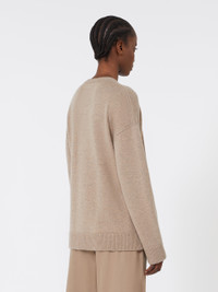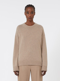 DETAILS Relaxed-fit basic sweater with a slightly oversized cut. Wool and cashmere yarn sweater Crew-neck Long low set-in sleeves Rib-knit trims COMPOSITION AND CARE 80% wool, 20% cashmere. Hand wash cold (40°c max); do not bleach; do not tumble dry; flat drying in the shade; cool iron; professionally dry clean perchloroethylene - mild process; do not wet clean.; iron with a cloth between.; using neutral detergent.; turn the articles inside out before washing.; to be ironed on reverse. Distributed by Max Mara S.r.l., registered office in Reggio Emilia (Italy), Via Giulia Maramotti 4, 42124 (IT)
