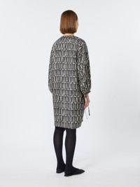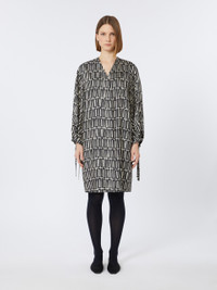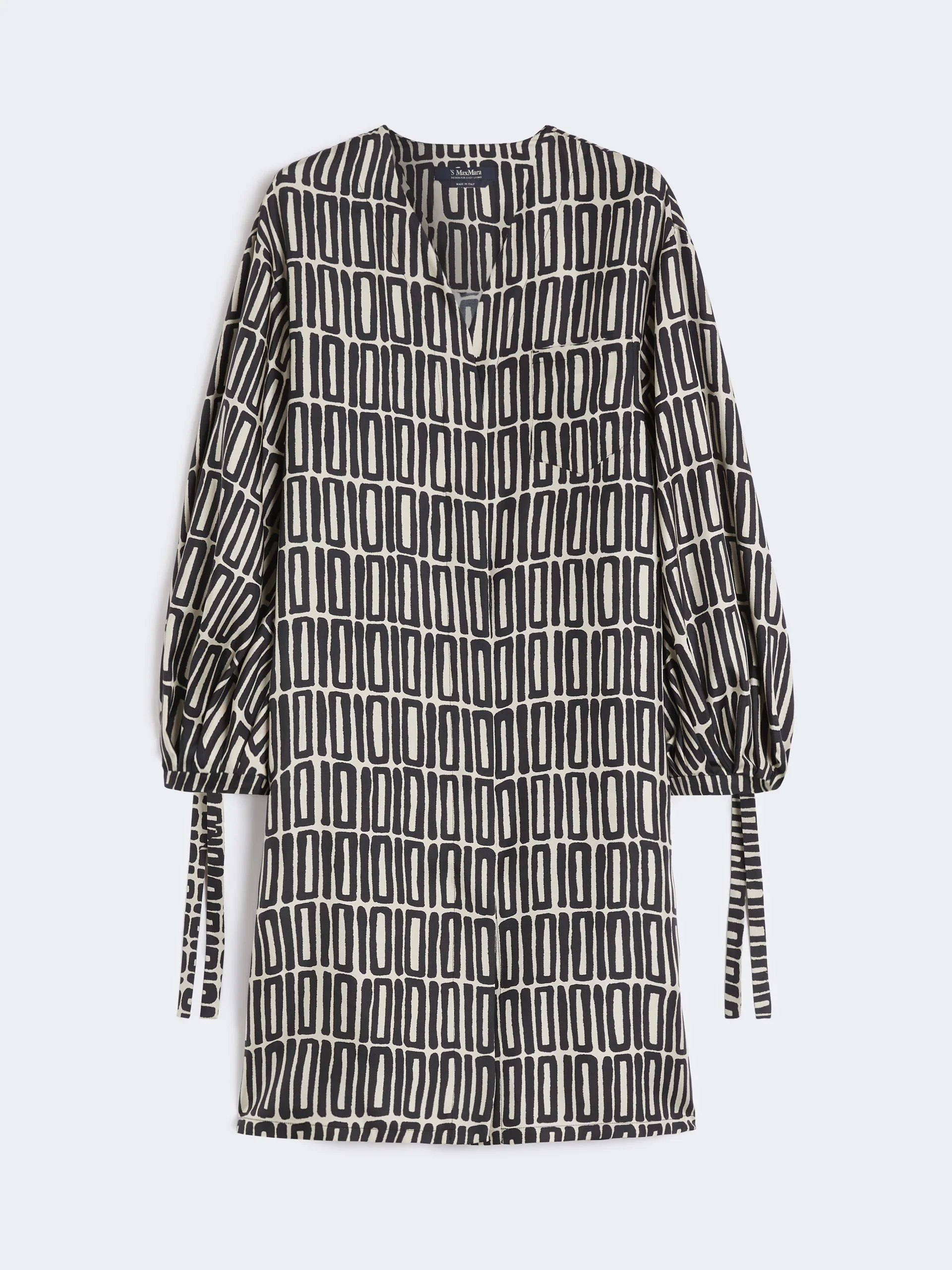 DETAILS Short dress with small patch pocket and puffed sleeves with ribbon fastening at the cuffs. - Printed pure silk twill dress - Straight cut - V neck - Front fastening with concealed mother-of-pearl buttons - Side inset pockets - Yoke seam and double darts on the back COMPOSITION AND CARE 100% silk. Do not wash; do not bleach; do not tumble dry; cool iron; professionally dry clean perchloroethylene - mild process; do not wet clean.; wash the garment while it is fastened.; contains non-textile parts of animal origin. Distributed by Max Mara S.r.l., registered office in Reggio Emilia (Italy), Via Giulia Maramotti 4, 42124 (IT)