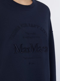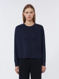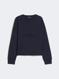 DETAILS Loose-fit T-shirt customised with central embroidered Max Mara logo detail on the front. - Pure cotton jersey T-shirt - Oversized fit - Crew-neck - Long low set-in sleeves - Rib-knit neck and cuffs COMPOSITION AND CARE Jersey fabric 100% cotton; - exclusive of embroideries. Machine wash cold delicate cycle; do not bleach; do not tumble dry; flat drying in the shade; cool iron; professionally dry clean perchloroethylene - mild process; professional wet cleaning - very mild process.; iron with a cloth between.; iron into original measurements.; using neutral detergent. Distributed by Max Mara S.r.l., registered office in Reggio Emilia (Italy), Via Giulia Maramotti 4, 42124 (IT) Collection: 'S Max Mara Product code: 9971036106010 - SMMRUGIADA