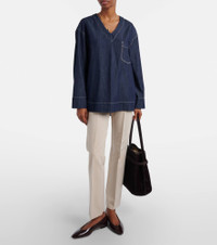 'S Max Mara conveys contemporary elegance through streamlined silhouettes and premium fabrics. Chic and effortless, the Pace shirt is made from denim with a V-neckline and a front pocket. Product Details - Material: 100% cotton - Care instructions: machine wash at 30 degrees - Made in Morocco - Color: blue - Designer color name: Scuro Pulio - Collar: V-neck - Pockets: breast pocket - Cuff: one button - Side slits - Item number: P01125837 Size & Fit - True to size - Dropped shoulders - Designed for a loose fit - Non-stretchy fabric - Falls below the hip - The model seen in the picture is 178cm-5'10" and wearing a size DE 34
