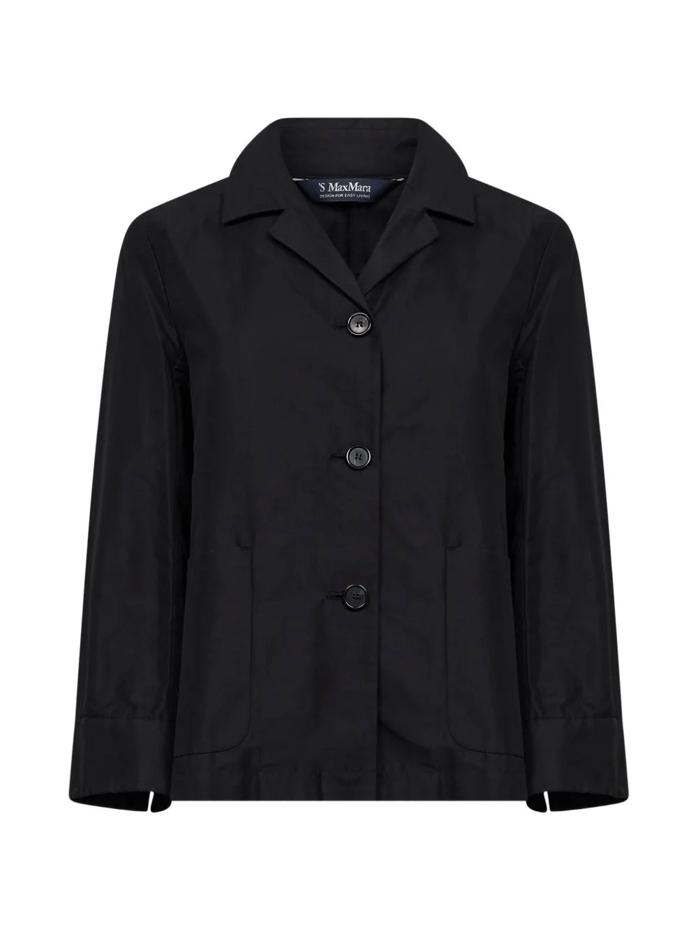 patch pocket jacket Highlights - Black - Lapel collar - Front patch pockets - Long sleeves - Back slits - Single-breasted Imported Composition Cotton 60%, Polyester 40%