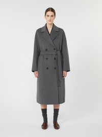 DETAILS Long double-breasted coat featuring a waistline-accentuating matching belt. - Coat in hand-sewn double-faced pure wool fabric - Straight fit - Lapel collar - Long kimono sleeves - Button fastening - Welt side pockets - Central rear vent COMPOSITION AND CARE Fabric 100% virgin wool; - except joining thread. Do not wash; do not bleach; do not tumble dry; cool iron; professionally dry clean perchloroethylene - mild process; do not wet clean.; wash the garment while it is fastened.; do not iron the buttons.; protect buttons before washing.; turn the articles inside out before washing.; contains non-textile parts of animal origin. Distributed by Max Mara S.r.l., registered office in Reggio Emilia (Italy), Via Giulia Maramotti 4, 42124 (IT)