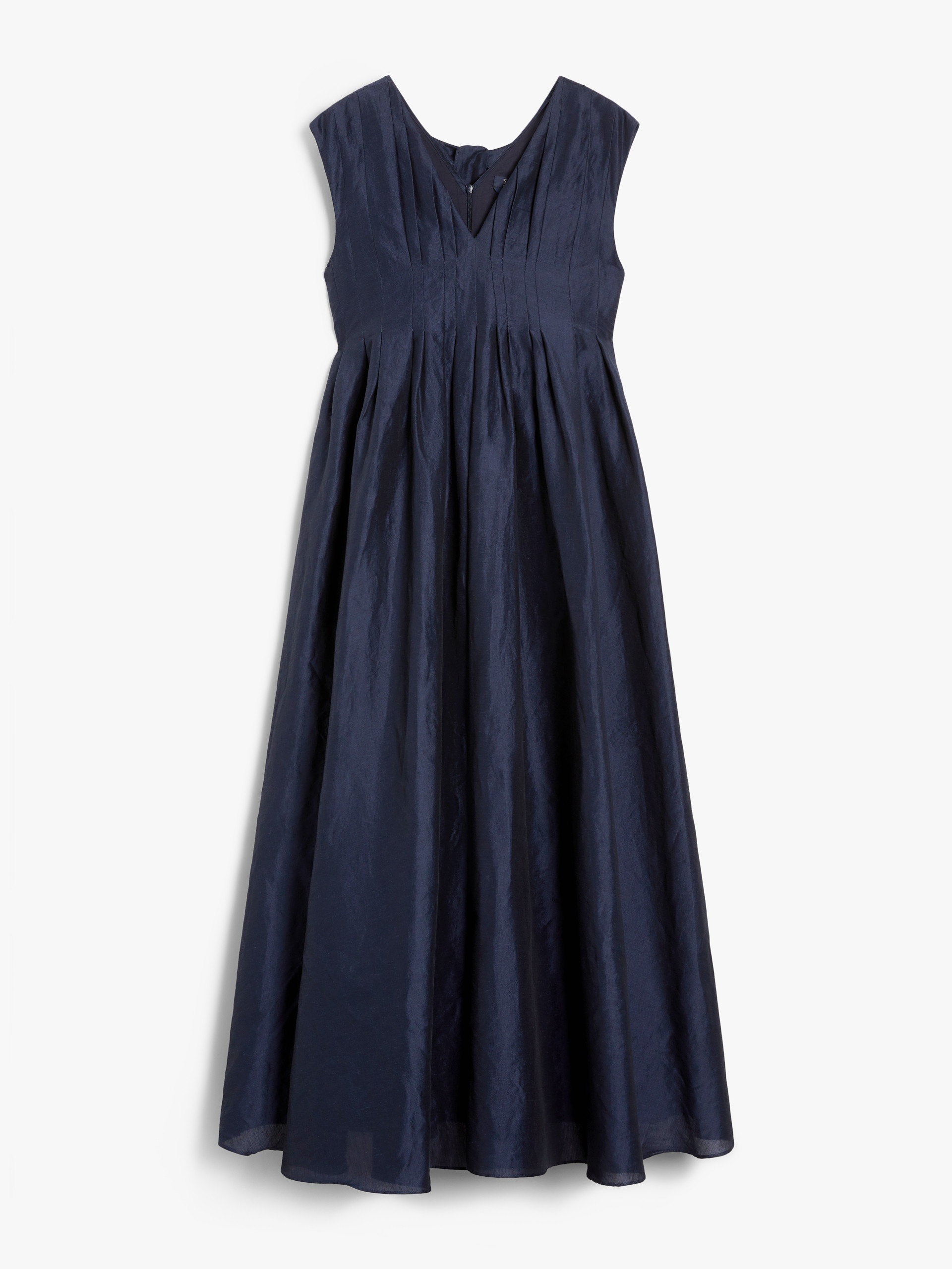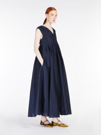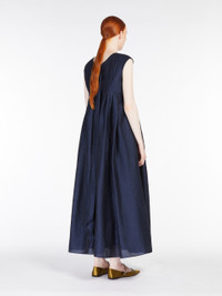 DETAILS Long sleeveless dress made of an exquisite combination of cotton cloth and ramie organza. The garment features a flared silhouette with flat pleats on the bodice and waist that open out at the hem. Features a V neck at the front and back, and long ribbons to tie at the back. Concealed zip fastening on the back. COMPOSITION AND CARE Fabric 70% ramie, 30% cotton; lining 100% cotton. Hand wash cold; do not bleach; do not tumble dry; line drying in the shade; cool iron; professionally dry clean perchloroethylene - mild process; do not wet clean. Distributed by Max Mara S.r.l., registered office in Reggio Emilia (Italy), Via Giulia Maramotti 4, 42124 (IT)
